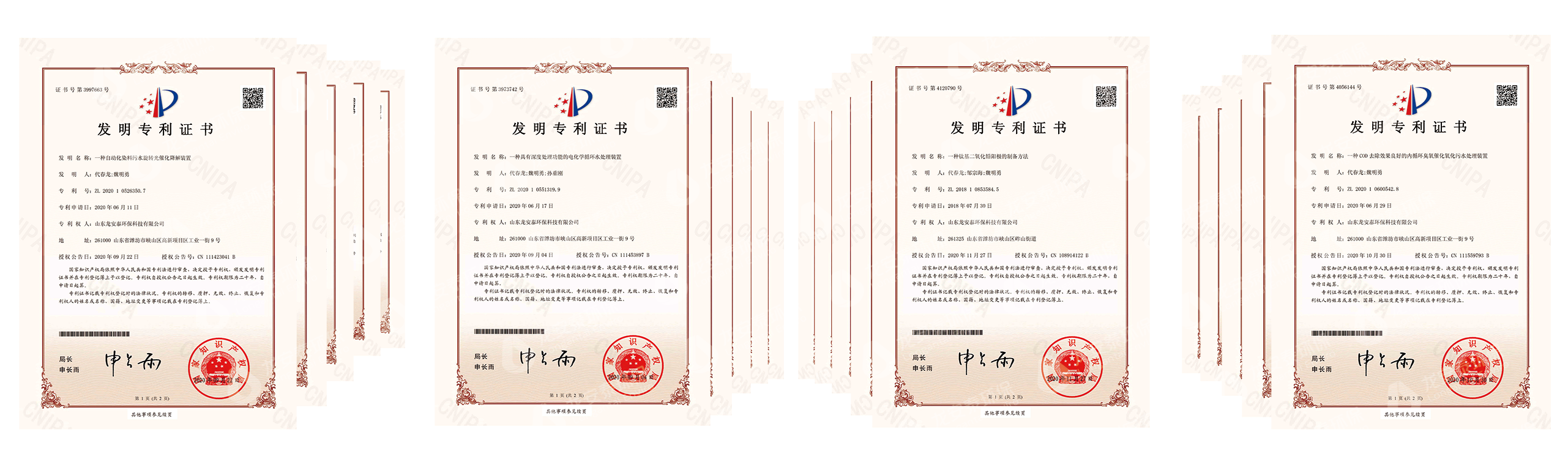 龍安泰重視研發在企業發展中的作用,現擁有發明專利70余項、實用新型專利10余項、外觀設計專利1項、省級科技進步一等獎1項、中國環保產業協會科技進步一等獎1項。與多個國內外知名院校和科研單位產學研合作,先后榮獲國家高新技術企業、國家專精特新“小巨人”企業、省瞪羚企業、省級專精特新企業、省制造業單項冠軍企業、省創新型中小企業、隱形冠軍企業、省級“一企一技術”研發中心、省級工業設計中心等榮譽稱號。