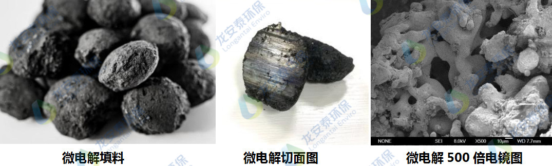 其反應原理基于填料中有效反應組份在高溫環境下形成合金,鐵碳合金形成原電池,原電池正負極形成氧化還原反應,又在催化劑的催化作用下對廢水中的有機物或無機物組份產生催化氧化和催化還原反應,進而形成對污染物的降解。